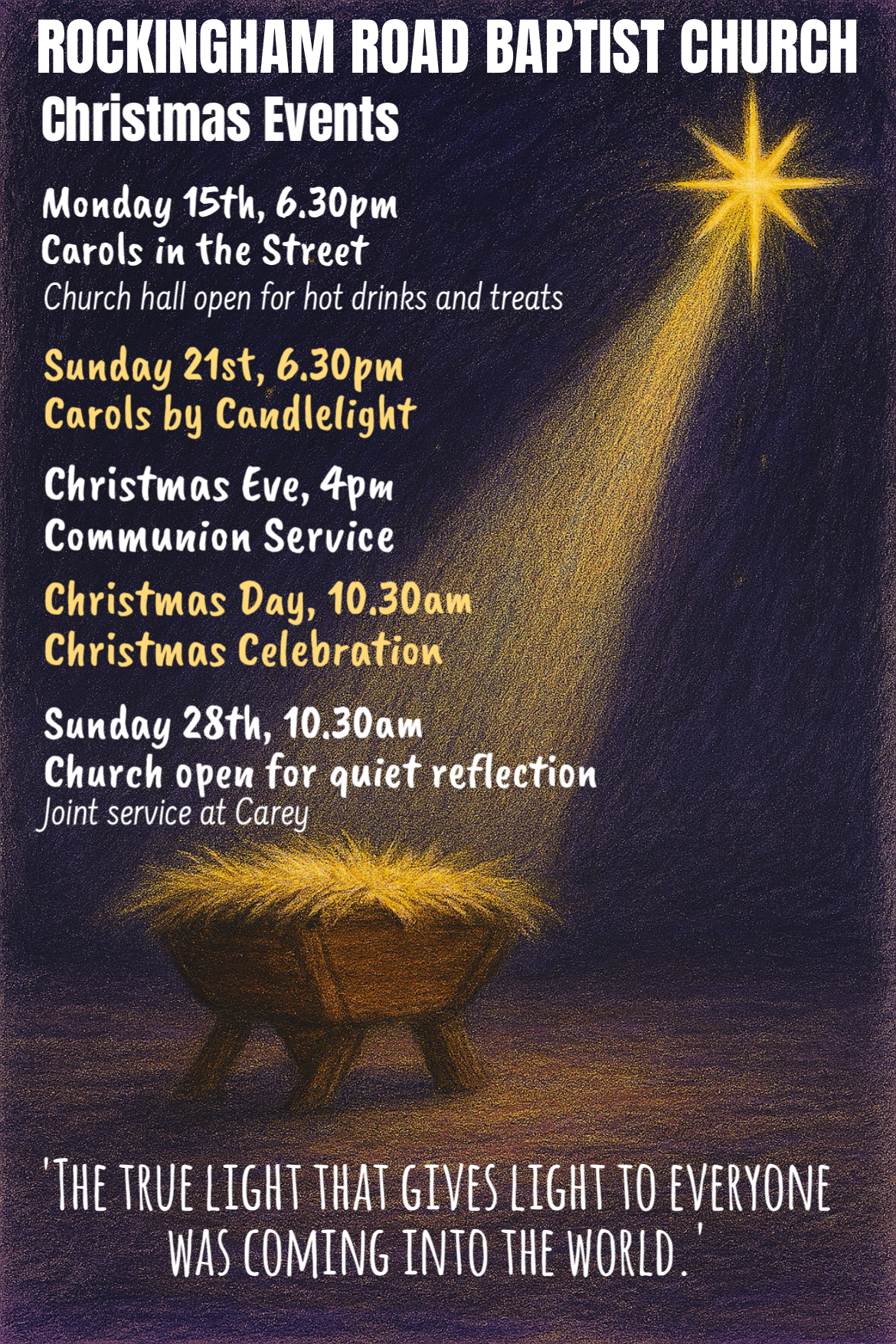 Welcome to the website of Rockingham Road Baptist Church, Kettering. We hope it will give you an idea of who we are and some of the activities we do.
